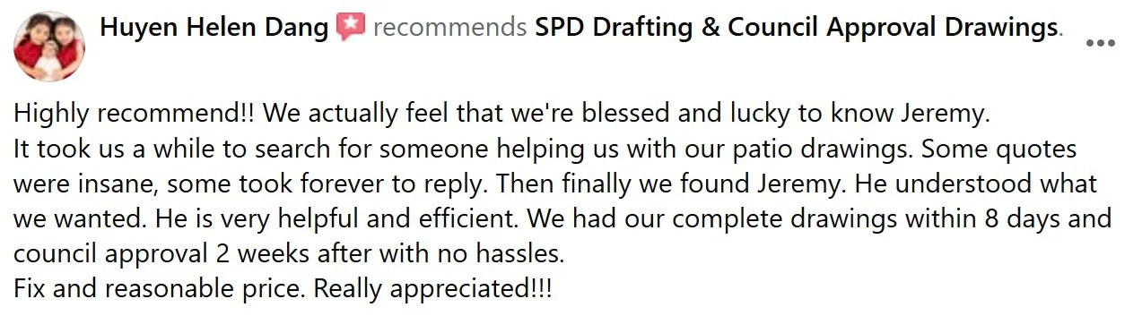 SPD Drafting specialises in high‑quality drafting services that support homeowners, builders, and designers in bringing their projects to life. With over 15 years of experience in the building industry, we are highly skilled in producing precise and reliable drawings that support smooth project execution from concept through to completion.